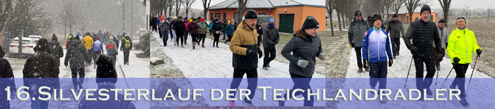 Gemeinsam mit zahlreichen Freunden unseres Vereines wurden verschiedene Strecken durch das schöne Teichland bei Schneefall laufend zurückgelegt.